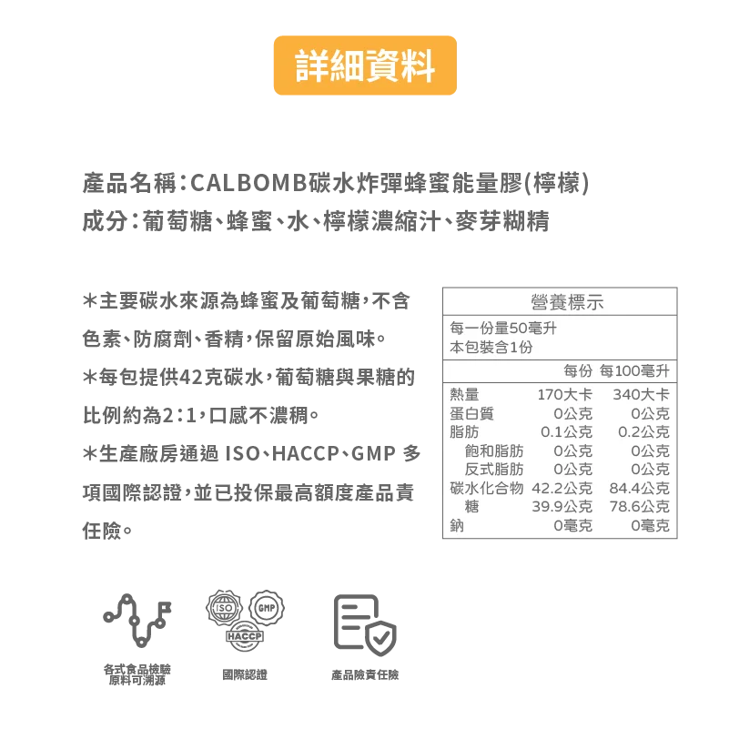碳水炸彈CALBOMB蜂蜜檸檬能量膠常見問題2