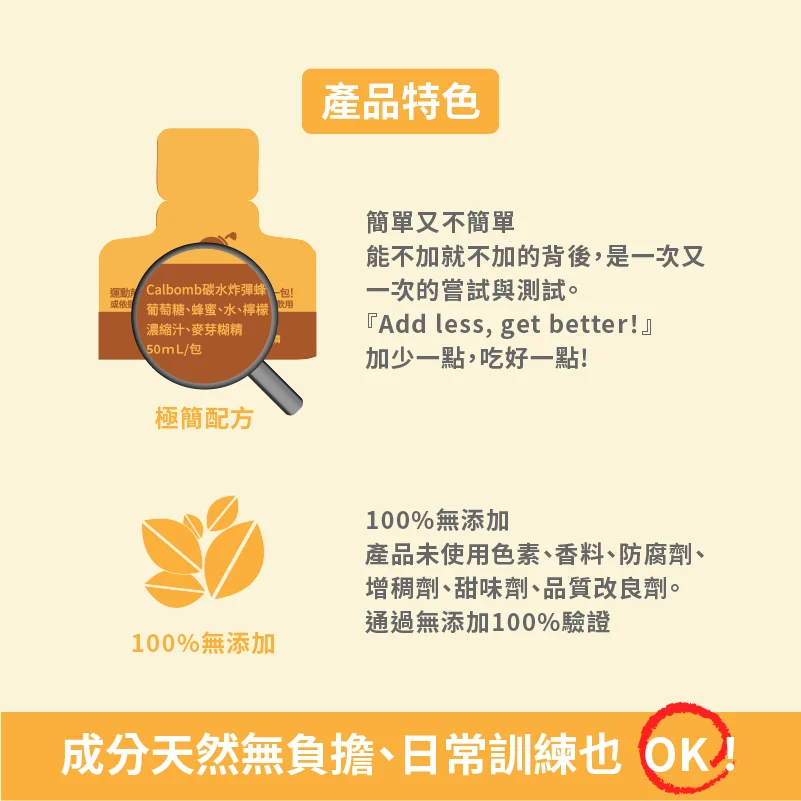 CALBOMB蜂蜜能量膠 產品說明 無添加